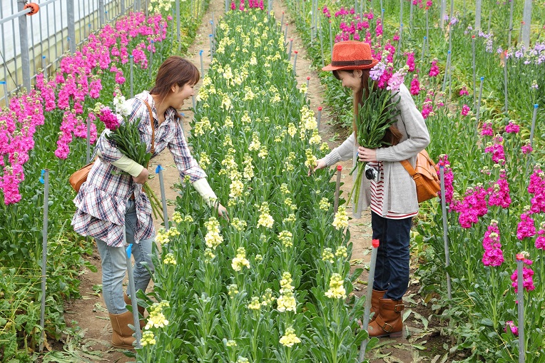 ・おおつの里花倶楽部で国内最大級の大型ハウスで季節の花摘み体験をお楽しみ下さい(2本お持ち帰り)