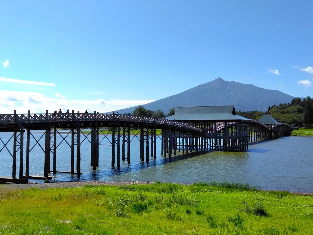 鯵ヶ沢駅-日本一なが~い木造三連太鼓橋「鶴の舞橋」ー道の駅なみおか(自由昼食/お土産お買物)-福島駅前(19:10頃)-郡山駅前(20:30頃)