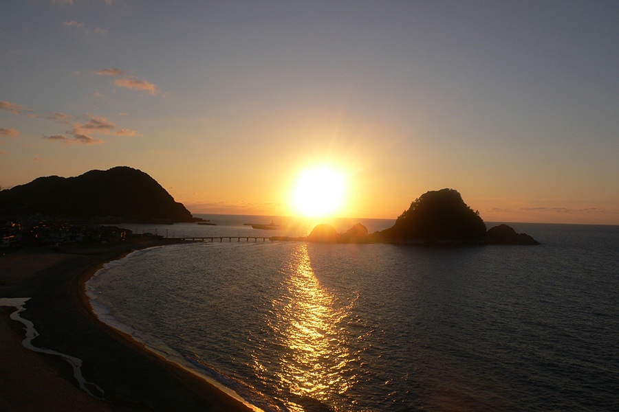 ・由良温泉は全国渚百選、日本の夕日百選の地で美しい日本海の夕日をご覧ください。(天候、季節によりご覧いただけない場合もございます)